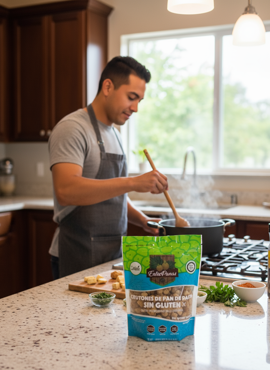 Disfruta de ricos crutones de pana, perfectos para darle un toque crujiente a tus ensaladas y sopas favoritas.