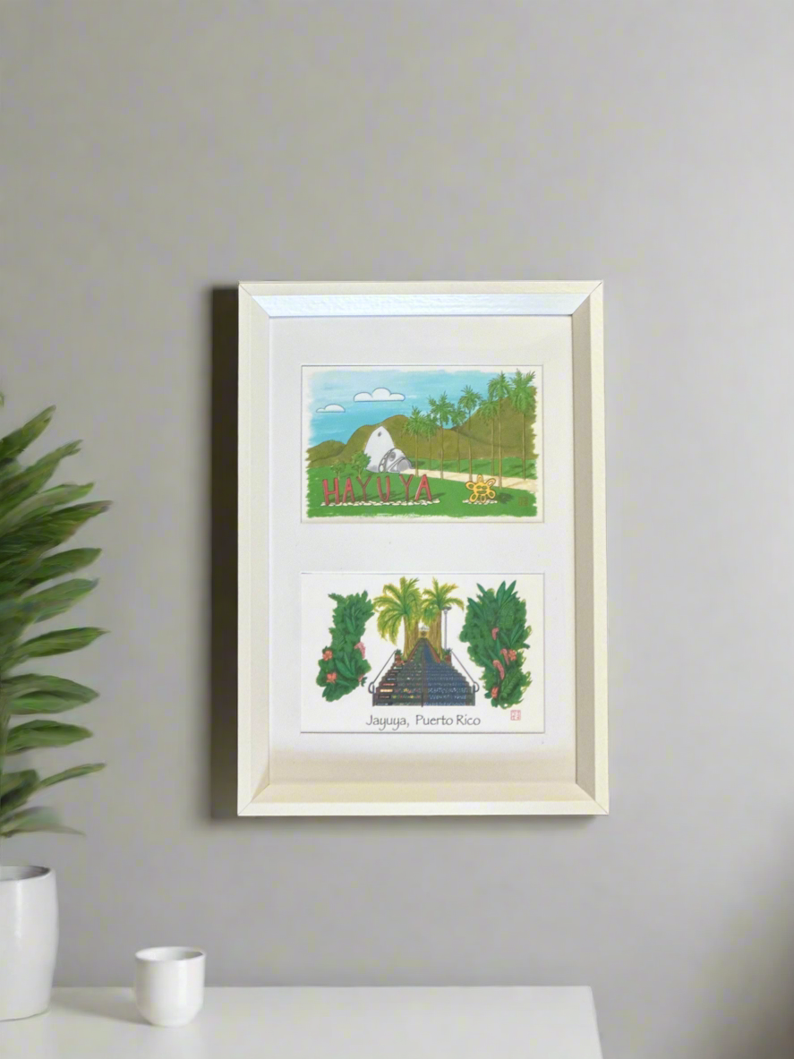 Hermosas postales de lugares irónicos de Jayuya como lo es el Museo El Cemí en Coabey y las escalinatas con los nombres indígena de todos los pueblos de Puerto Rico.